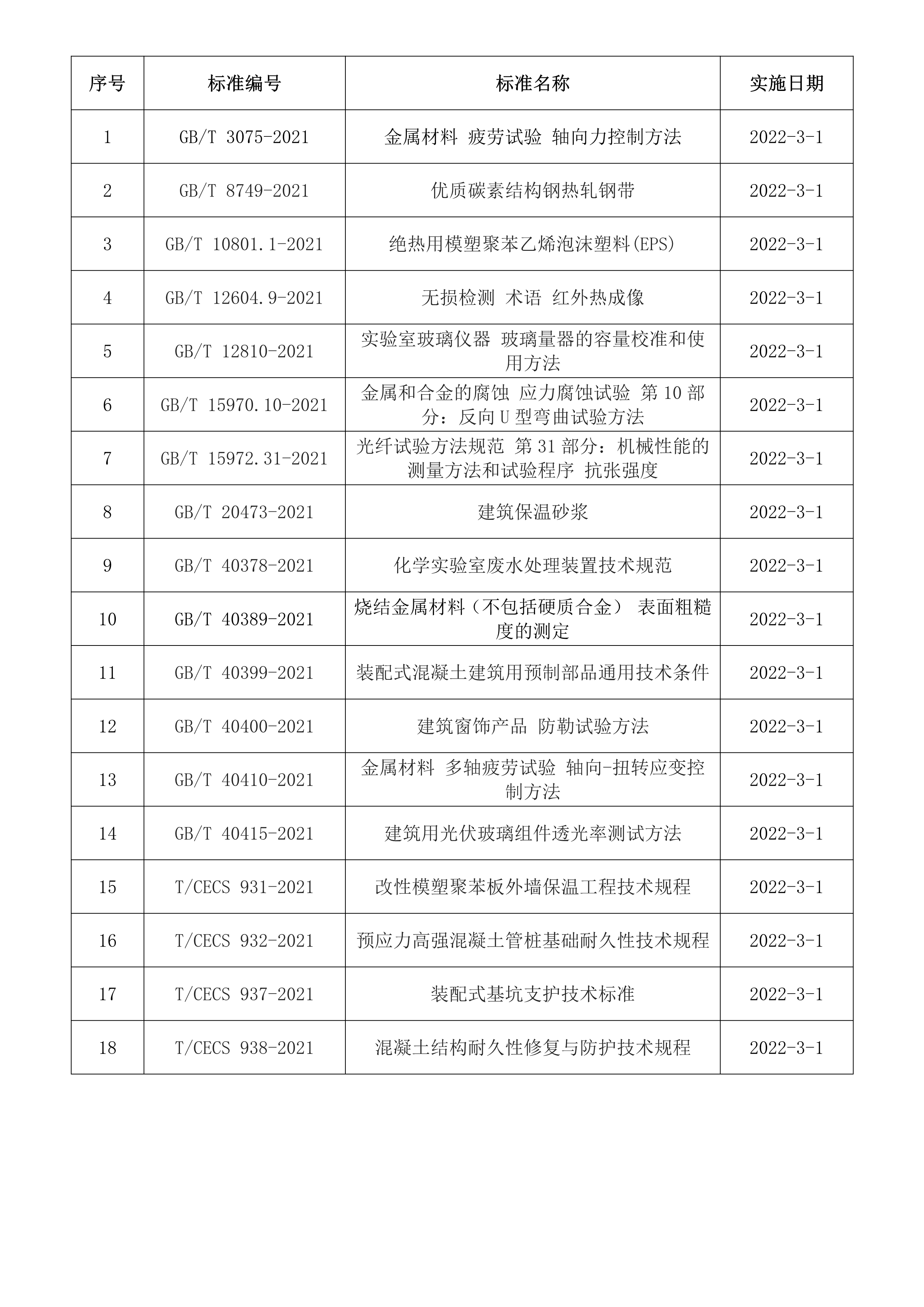 2022年3月開始實(shí)施的工程建設(shè)標(biāo)準(zhǔn)