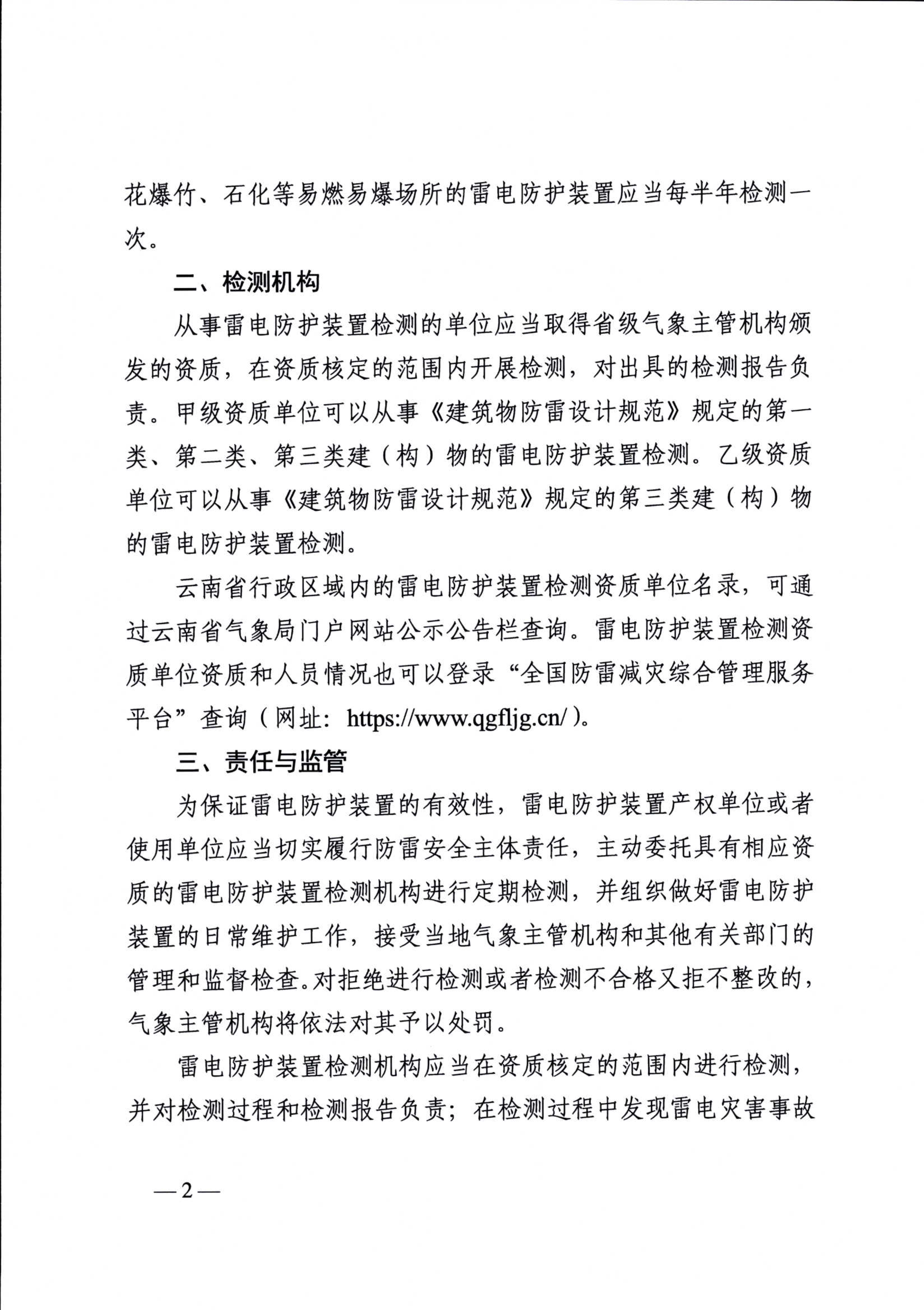 云南省氣象局關(guān)于做好2022年度雷電防護(hù)裝置檢測工作的通知