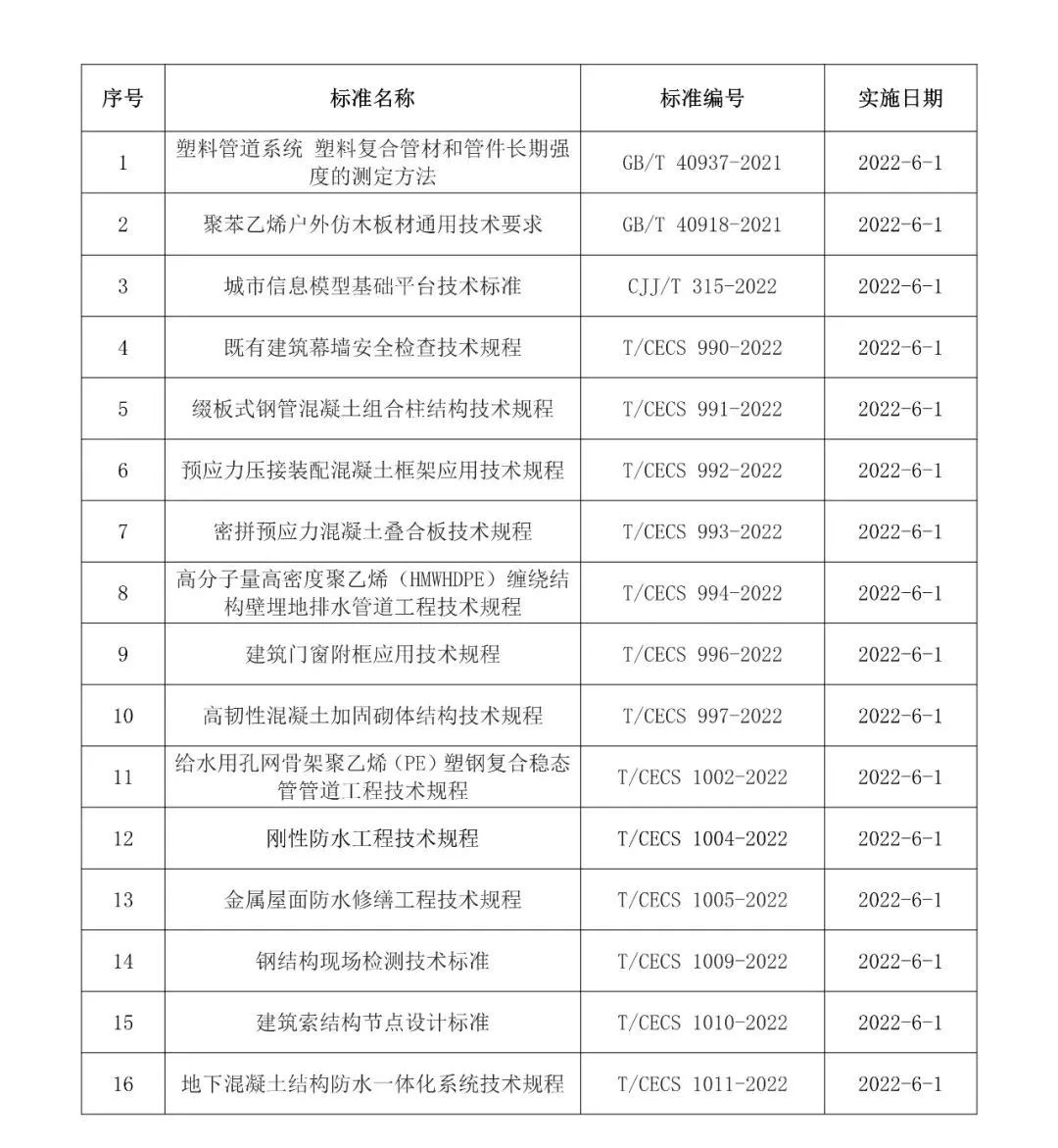2022年6月開始實施的工程建設(shè)標準