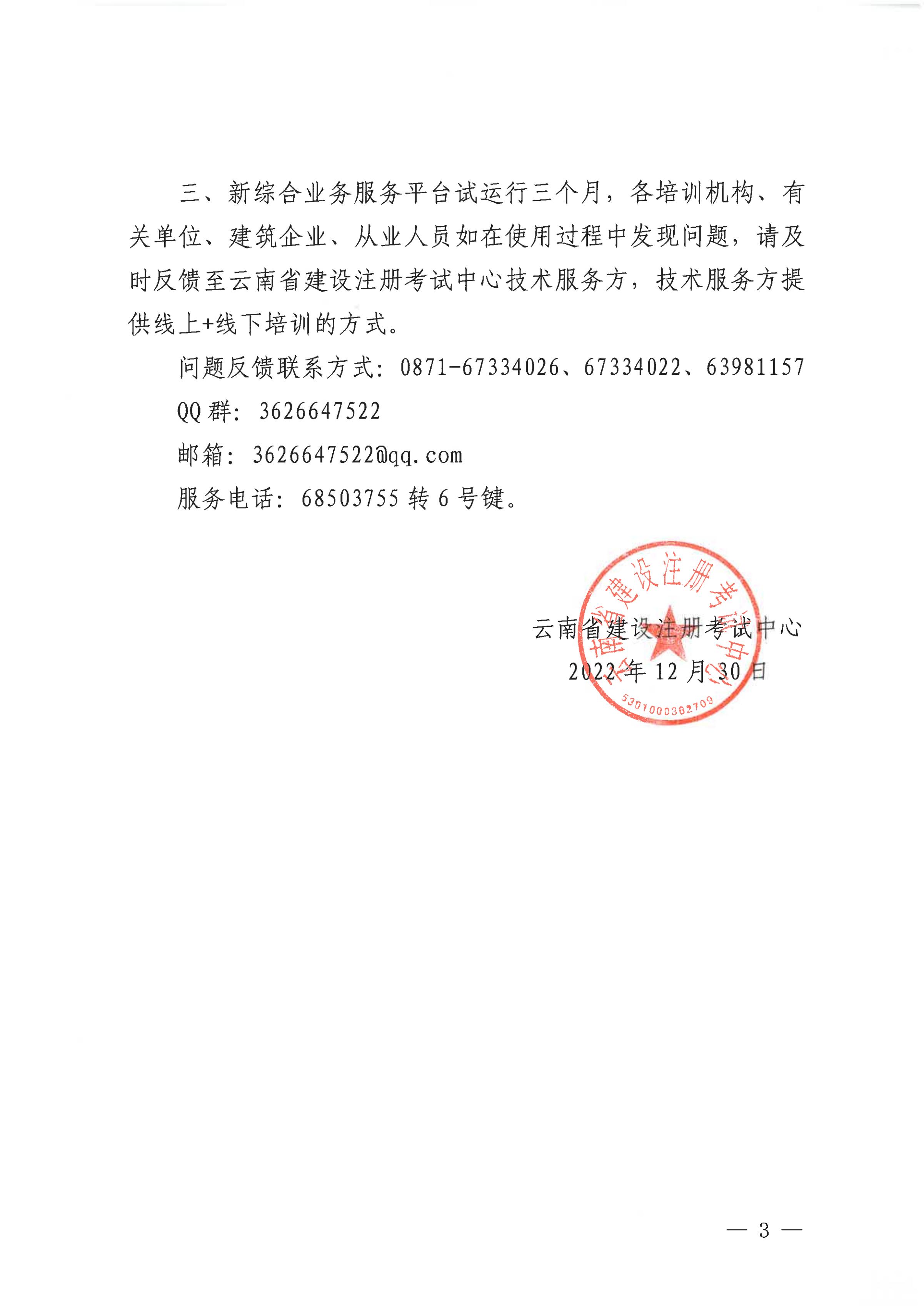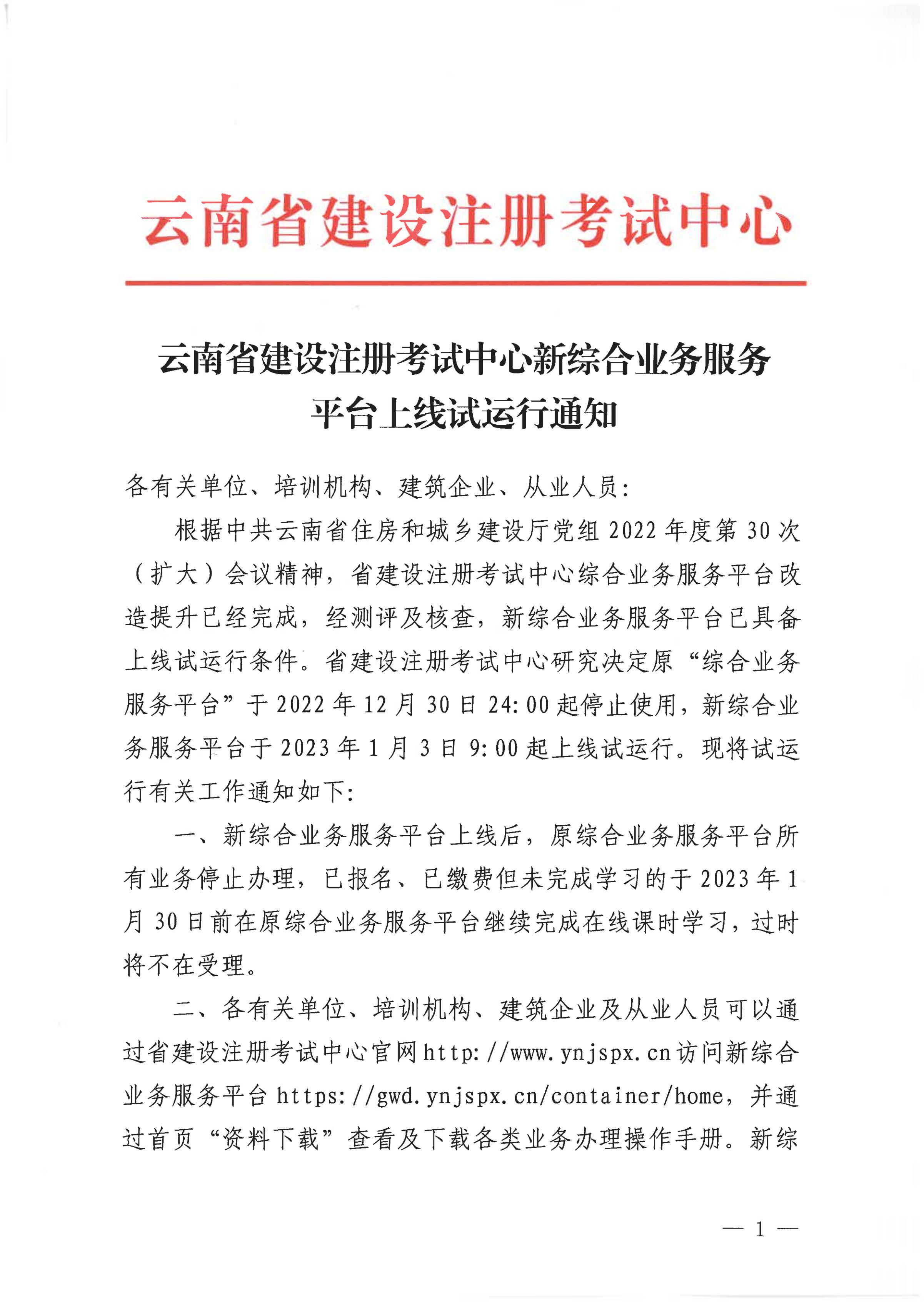 云南省建設(shè)注冊考試中心新綜合業(yè)務(wù)服務(wù)平臺上線試運行通知